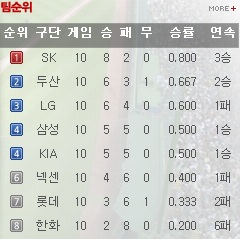 KBO 4/27 ¼øÀ§ ¹× ÆÀº°Å¸°Ý¸®´õ [1] |
